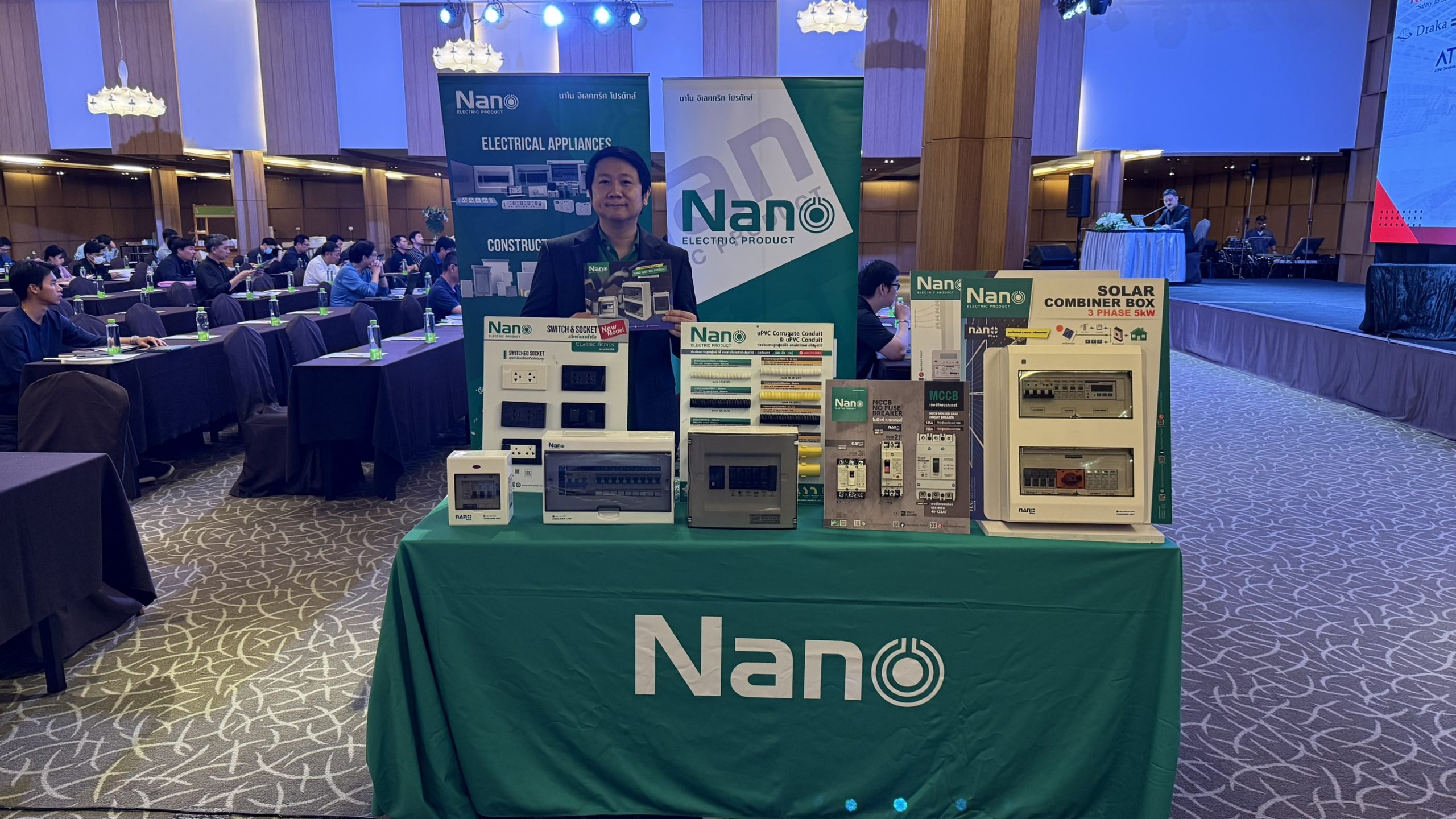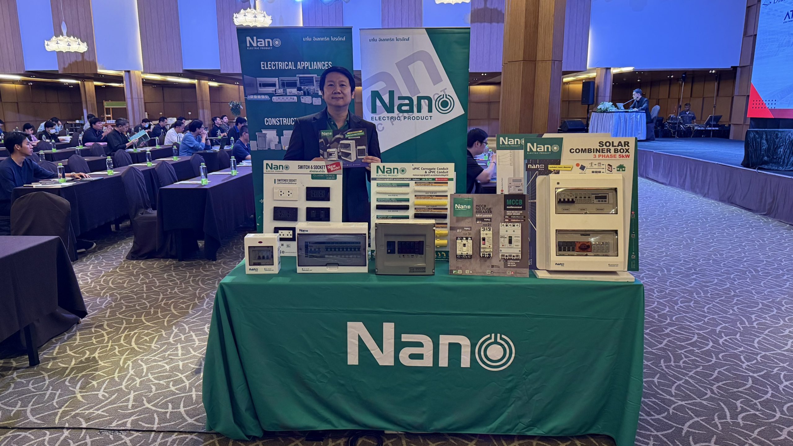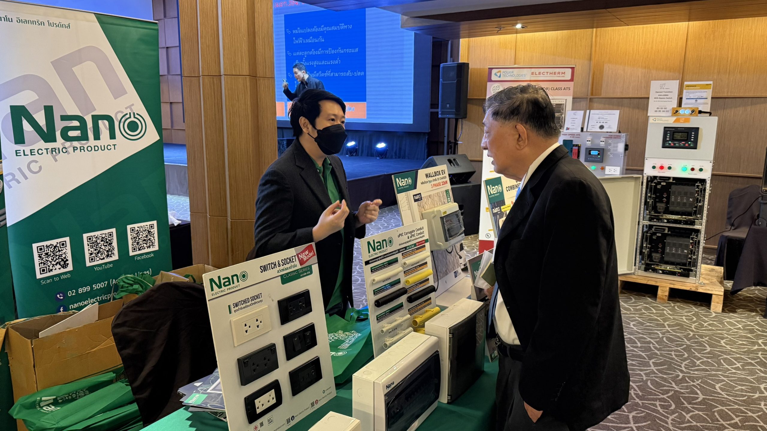ทั้งนี้ภายในบูธงานได้มีการจัดแสดงสินค้าตัวอย่าง พร้อมให้ความรู้ คำแนะนำต่างๆ ภายใต้ Brand Nano Electric Product ไม่ว่าจะเป็น ปลั๊ก, สวิตช์, ตู้คอนซูเมอร์, ตู้กันน้ำ, กล่องกันน้ำ, ท่อร้อยสายไฟ, ท่ออ่อนร้อยสายไฟ และเซฟตี้เบรกเกอร์
